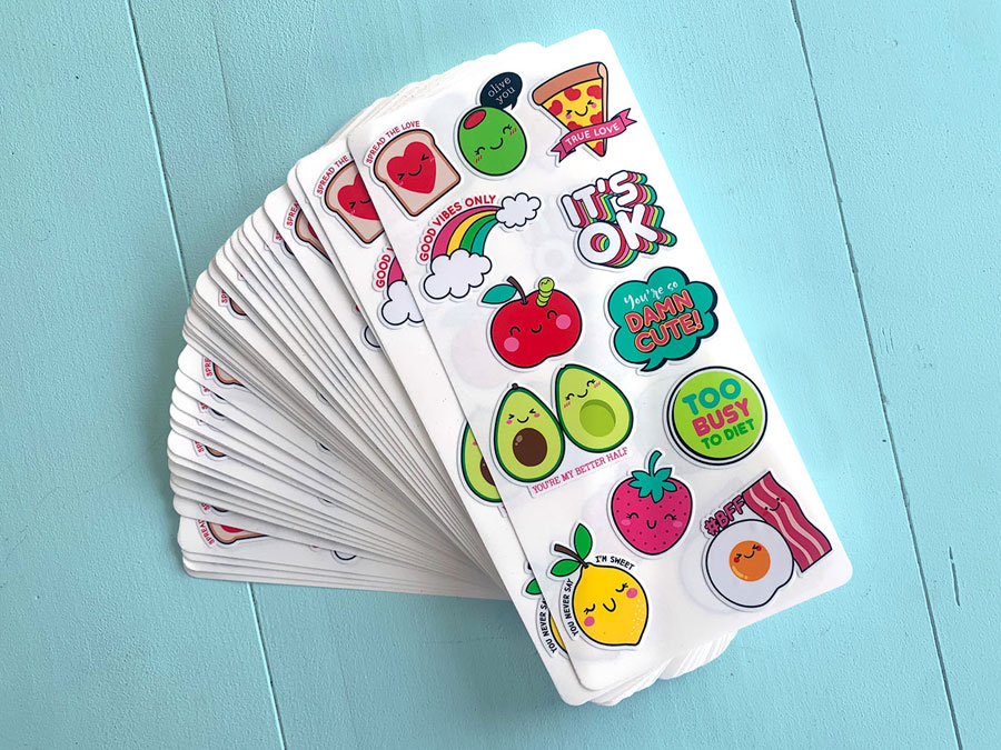 Stickers and labels on sheets. From round, square, rectangle and any shape you need. Gloss and matte vinyl options